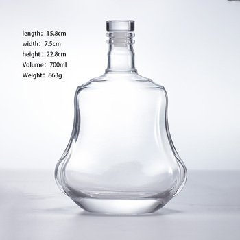 Gran oferta de lujo, botella de vino personalizada de forma plana de 700ml de cristal, bebidas alcohólicas hechas a mano, vodka, whisky con corcho de madera
