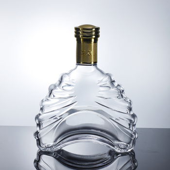 Botella de cristal personalizada más vendida para gin Ron brandy whisky vodka y XO forma plana con sellado de corcho